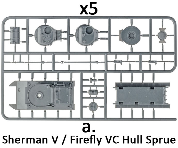 includes five Sherman V / Firefly VC plastic spures, one plastic Tank Commander sprue & one British Tank decal sheet.During 1942-43 the standard size of an armoured troop (platoon) was three tanks and had served the British well. However, it became clearer as the war progressed that the standard 75mm gun of the Sherman would not be powerful enough to deal with the ever increasing amounts of armour the German were applying to their tanks.