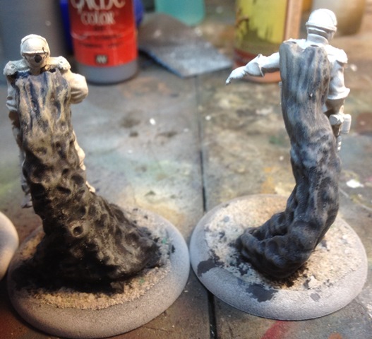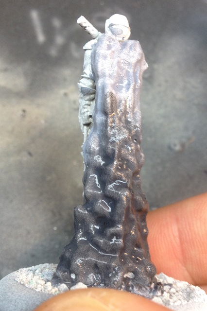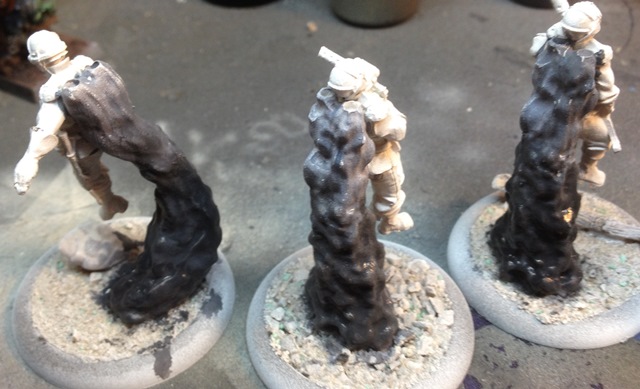 Und was mir an diesem Tutorial, wie auch bei allen anderen, die ich bisher zu diesem Thema gelesen und gesehen habe, fehlt, ist die Erklärung, wie ich das mache, ohne dass mir die Suppe überall hinläuft, wo sie nicht hin soll. Gut, bei den hier gezeigten Rauchschwaden mag das relativ egal sein, aber man (will heißen: Leute, die nicht ich sind) kann die Technik ja auch auf deutlich kleineren Flächen einsetzen.