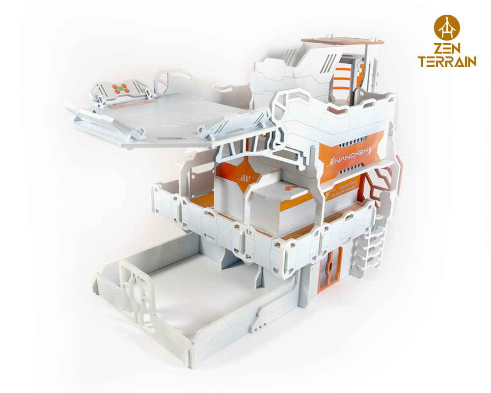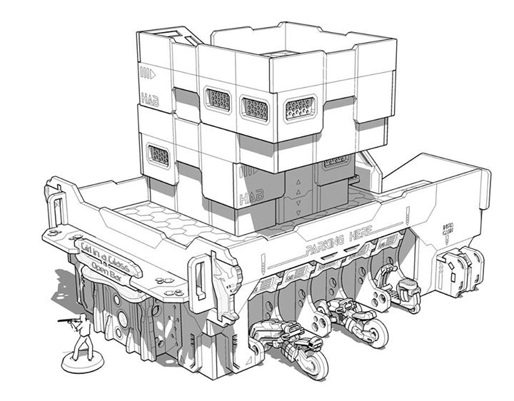 Wirklich sehr schicker Würfelturm/Wohnblock. Vor allem die schlicht weiße Bemalung mit leichten orangen Akzenten find ich sehr gut/futuristisch. Echt cool! 🙂