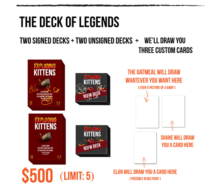 The game was created by Elan Lee (Xbox, ARGs), Matthew Inman (The Oatmeal), and Shane Small (Xbox, Marvel). We think this game combines all the things we’re best at creating, and and put together this Kickstarter campaign because we can’t build this without you.