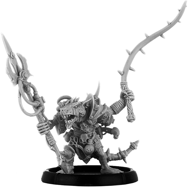 Designed by an old friend of ours, Wayne Kemp (of Heelanhammer fame), Master Converter Kemp-Kemp has been lovingly sculpted by Tim Prow from the excellent artwork by Wayne England. Need a Rat-Warlock with some arcane contraptions and a great big whip? Call Kemp-Kemp!