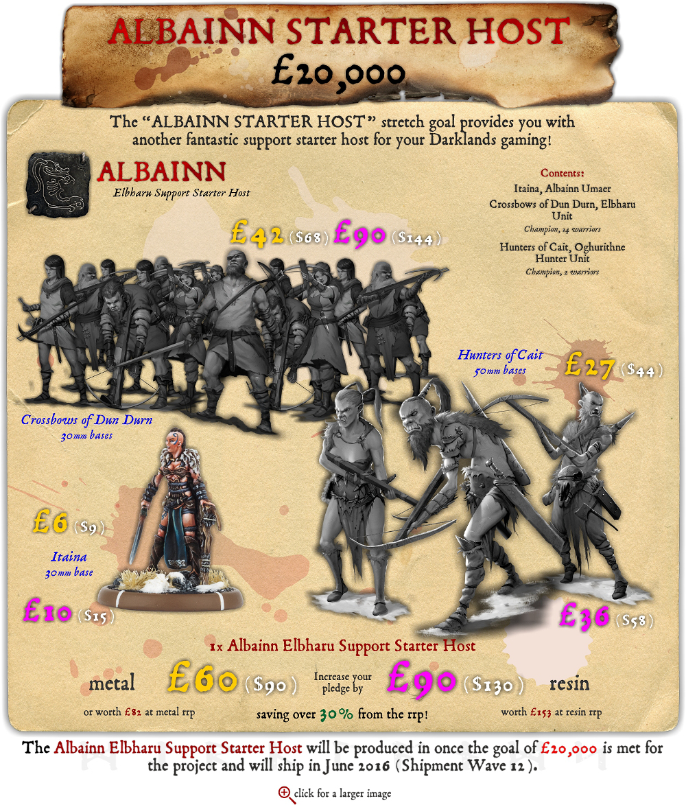 Starter Hosts contain a small Darklands host of around 499 gold – so Encounter Host size – where possible, and you can add the rulebook, order tokens and D10 dice to your pledge to ensure you have everything you need to get started!