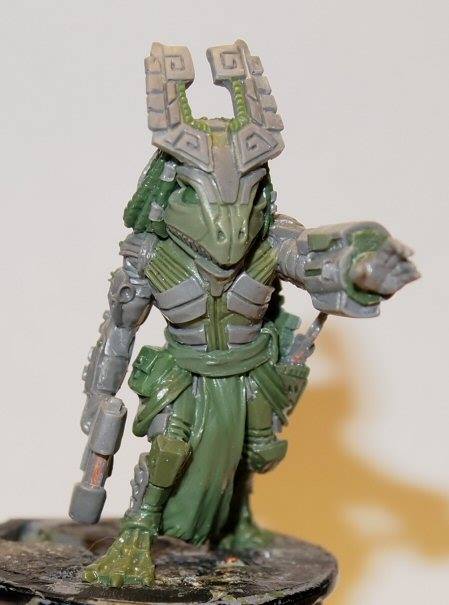 Der Echsenmensch-Predator sieht nicht schlecht aus. Vielleicht ist der Kopf etwas zu groß (oder ist das ein Vollhelm?), aber er sieht nach einer interessanten 40k-Slann-Mini aus…