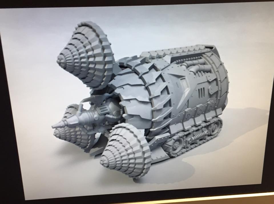 Bei dem Bohrer mit dem Wumme sind die Bohrköpfe einfach nach außen geschwenkt worden, um Platz für die ausfahrbarre Wumme zu haben. Das ergibt schon Sinn: Wand durchbrochen und Feuer frei. Wäre ja blöd, wenn man den Bohrer erst zurückziehen muß, um dann eine Kanone in Stellung zu bringen, was dem Gegner schon mal Gelegenheit zur Reaktion verschafft.