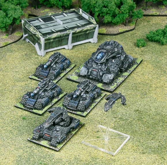 Bases sind bei den Bodenpanzern angegossen. Die Antigravpanzer sind hingegen lose und werden auf ein Base mit Pinn drauf geklebt. Diesen Pinn kann man ggf. verlängern, damit die etwas höher schweben.