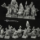 These models are made of high quality resin. The set contains 10 dwarves miniatures and 10 square 20mm scenic bases.