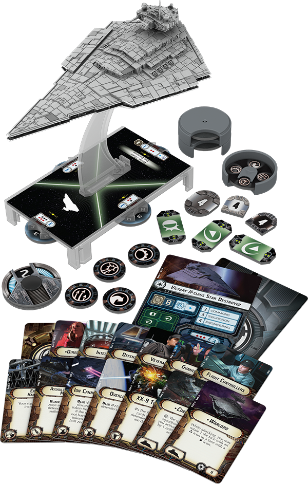 Available in both the Core Set and the Victory-class Star Destroyer Expansion Pack, the Victory-class Star Destroyer can be fielded as either of two subclasses. The more powerful Victory II costs eighty-five fleet points, and the Victory I, which is very nearly as imposing, costs seventy-three.