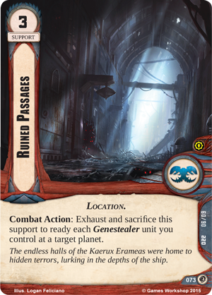 A Genestealer ambush becomes much more dangerous when you have Ruined Passages (What Lurks Below, 73)