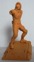 Z.B. knittert (eher: wabert) die Hose mal wieder über ihre ganze Länge hinweg, aber nicht auf besonders realistische Weise. Auch die extreme Armhaltung wirft kaum Falten im Brust-Schulterbereich. Und, ja, selbst, wenn einige Elemente dort fester sein mögen, also sich nicht oder nicht stark falten würden, sollte es der Stoff darunter und darum. Die Kapuze ist einfach glatt. Die Kleidung am Torso wirkt auch unecht steif. Gleichzeitig sind viele zierende Elemente recht stark abgesetzt.