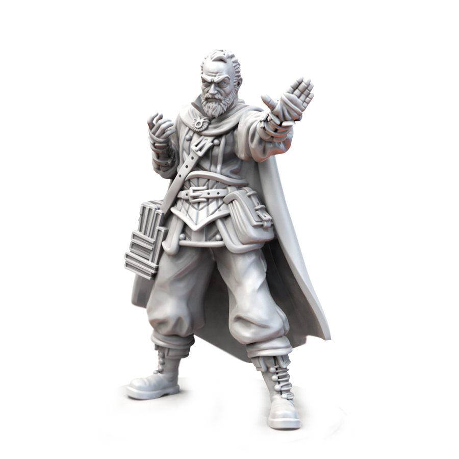 With spell books at his side and in the midst of casting a spell this all new Wizard 32mm Resin Miniature is a great addition to your gaming group.