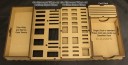In its default state the Game Box can take 97 x 25mm round tokens ( thickness between 3.0mm – 3.2 mm), 4 x 25mm Square Command Tokens, a pack of the official “Classified Deck” (standard poker-deck sized cards), 10+ 20-sided dice, Narrow, wide and cargo gate markers, Measuring marker, Large and small Flame templates, blast template, 55mm and 40mm Camouflage Markers, Mini-tape measure, Laser Pointer and a set of S1-S7 silhouette markers.