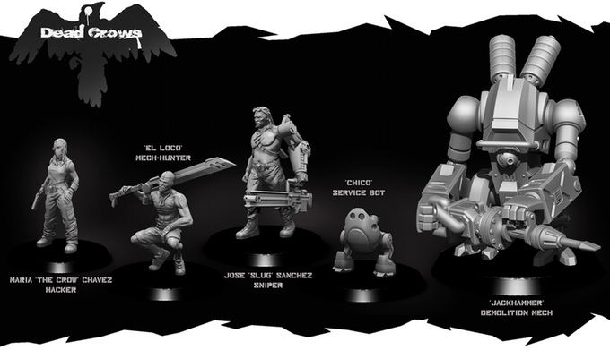The Dead Crows are a group of Mexican mercenaries and gang members, hired by a syndicate of crime-lords to infiltrate the ruined city to undertake a number of daring heists… ruthlessly pursued by the Dromeda Corporation’s sentries and drones.