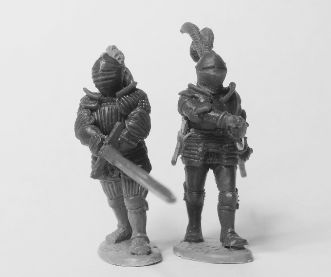 The second figure is wearing a more Italian style armour more well known for its smooth surfaces.