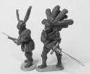 Set 4 is going to be 2 static Knights useful for command bases the first figure shown is wearing a very decorative armour in the style of Landsknecht dress. He is in a very relaxed confident pose, his helmet is an early form of Burgonet and he has a serrated Zweihander