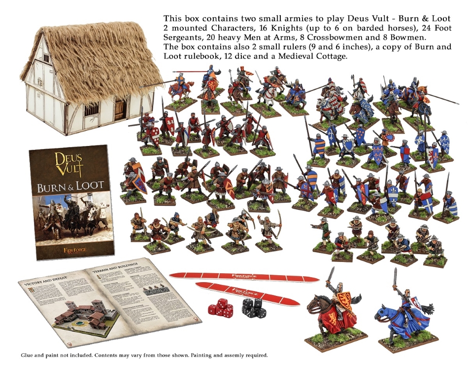 This box contains everything you need to play Burn & Loot.Two small armies: