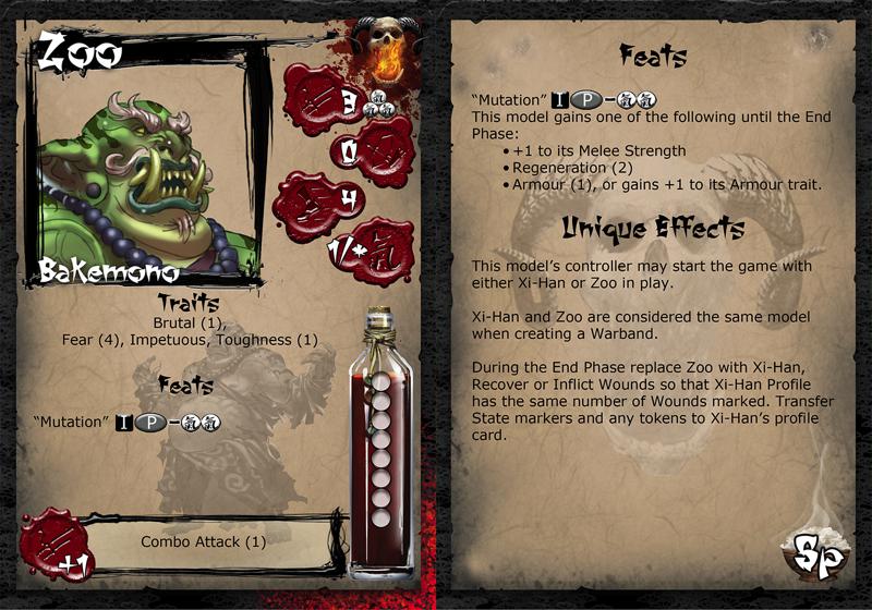 It is hard to tell if Xi-Han had lost his mind before or after he consumed every unusual mushroom he could find. The exact purpose of this pursuit remains a mystery. What is clear is that bizarrely he has managed to develop the ability to focus and force his body to replicate the effects of these rare and potent fungi. Sending his body into spasm and unleashing the deranged and violent “Zoo” for a short while to wreak havoc on his enemies. He also still maintains a constant supply of mushrooms on his person that he can throw in battle to Blind, Frighten or enrage anyone unlucky enough to inhale the spores.