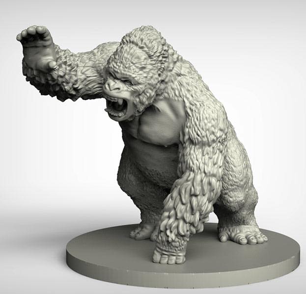 Here’s an early Christmas present – a preview of our Giant Ape. Sculpted by Ernst, he’ll be cast in resin in three pasts. The render pics give an idea of scale – that’s a 50mm base that he’s sitting on. Hopefully out in February, but we’ll keep you posted.