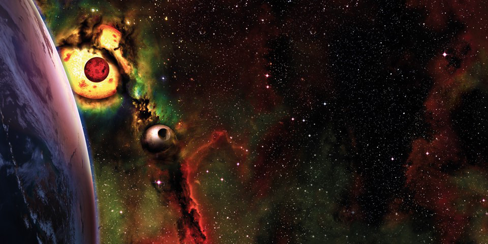 Ich glaub, da hat der Saturnmond Mimas Pate gestanden. Der sieht nämlich wirklich aus wie der Todesstern 🙂