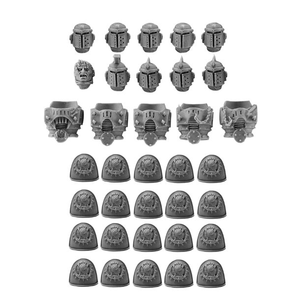 This multi-part resin and plastic set contains the components necessary to assemble a twenty-man Legion Tactical Squad in Mark IV power armour for the Death Guard Legion, including twenty resin Death Guard Legion MkIV Shoulder Pads, ten Death Guard Legion Heads and five Death Guard Legion torsos to mix throughout the squad. The kit also includes an impressive selection of optional weapons and wargear such as combat blades, ammo packs, holstered bolt pistols, frag and krak grenades and several weapon options for the squad sergeant. Supplied with twenty 32mm round bases.