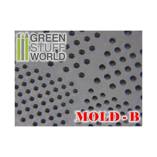 Um Nieten einfacher und in größerer Menge modellieren zu können, kommt von Green Stuff World eine Texturplatte aus Gummi.