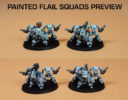 We got back the painted up CEF Plastic Miniatures this afternoon. I took some fast photos before we add the CEF logos and numbering decals on to them. The image below shows the four different types of Flail Infantry squads (3 Flail minis on a 40mm round base) that you can make by changing the top/back mounted weapon: Anti-Tank Flail Squad (top left), Stock Flail Squad (top right), Interdiction Flail Squad (bottom left), and Support Flail Squad (bottom right). Two Flail Infantry Squads are included in the Core Starter Set and CEF Army Set. Click on the image below to open larger version of the photo.