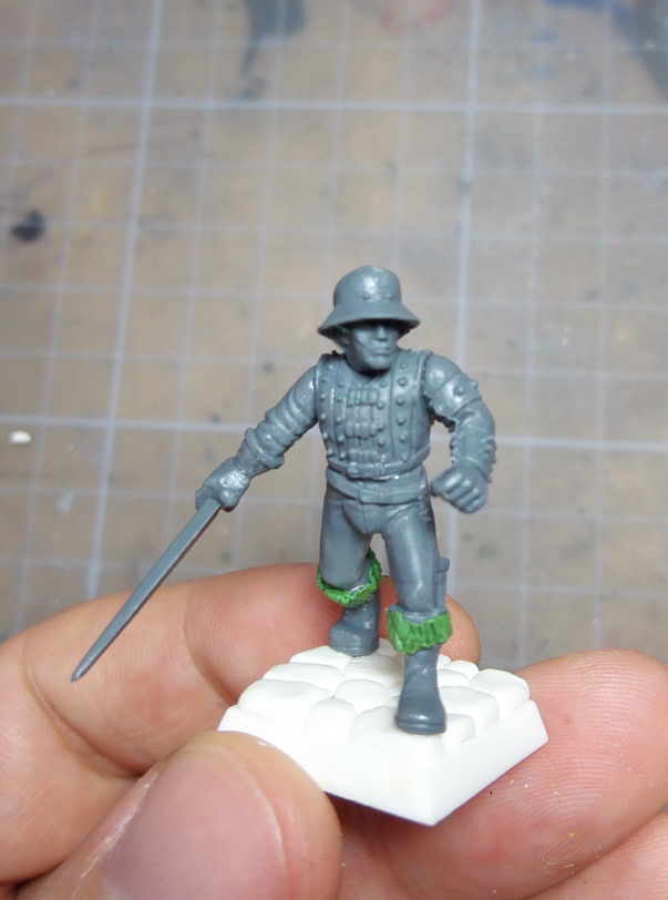Die Freischärler brachten lediglich ein Problem mit sich – zu leichte Kleidung für eine Reise in eine gefrorene Stadtruine. Die nackten Füße und Unterschenkel der Recken verwandelte ich mit etwas Greenstuff in schwere Stiefel, ein weiteres Paar erhielt zusätzlichen Fellbesatz.