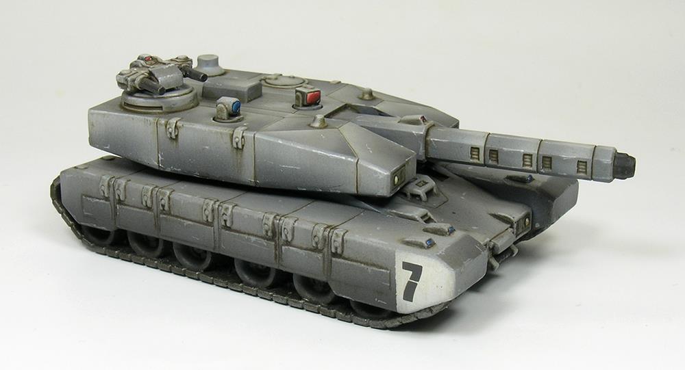 This is the Core Systems MBT, the main armoured fighting vehicle of the Core Systems Ghulams (CSG), an alien mercenary force. There’s also a general purpose tank with twin lasers for anti-air and ground target combat, and a launcher tank that can either fire smart munitions or thermobaric rounds.
