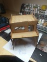 Beim Aufmachen der weißen Verpackung offenbart sich uns ein ca. 30-40 Teile großer Haufen an Teilen, sowie eine kleine Anleitung auf einem DIN A4 Blatt. Die Teile kommen nicht in Bögen, sondern liegen einfach verstreut im Karton.