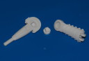 Wenn man die Bauteile genauer unter die Lupe nimmt, findet man vereinzelte Gussgrate oder Resinrückstände, die sich aber schnell und einfach entfernen lassen. Einzig der folgende Anguss war etwas größer, er ließ eich aber problemlos entfernen: