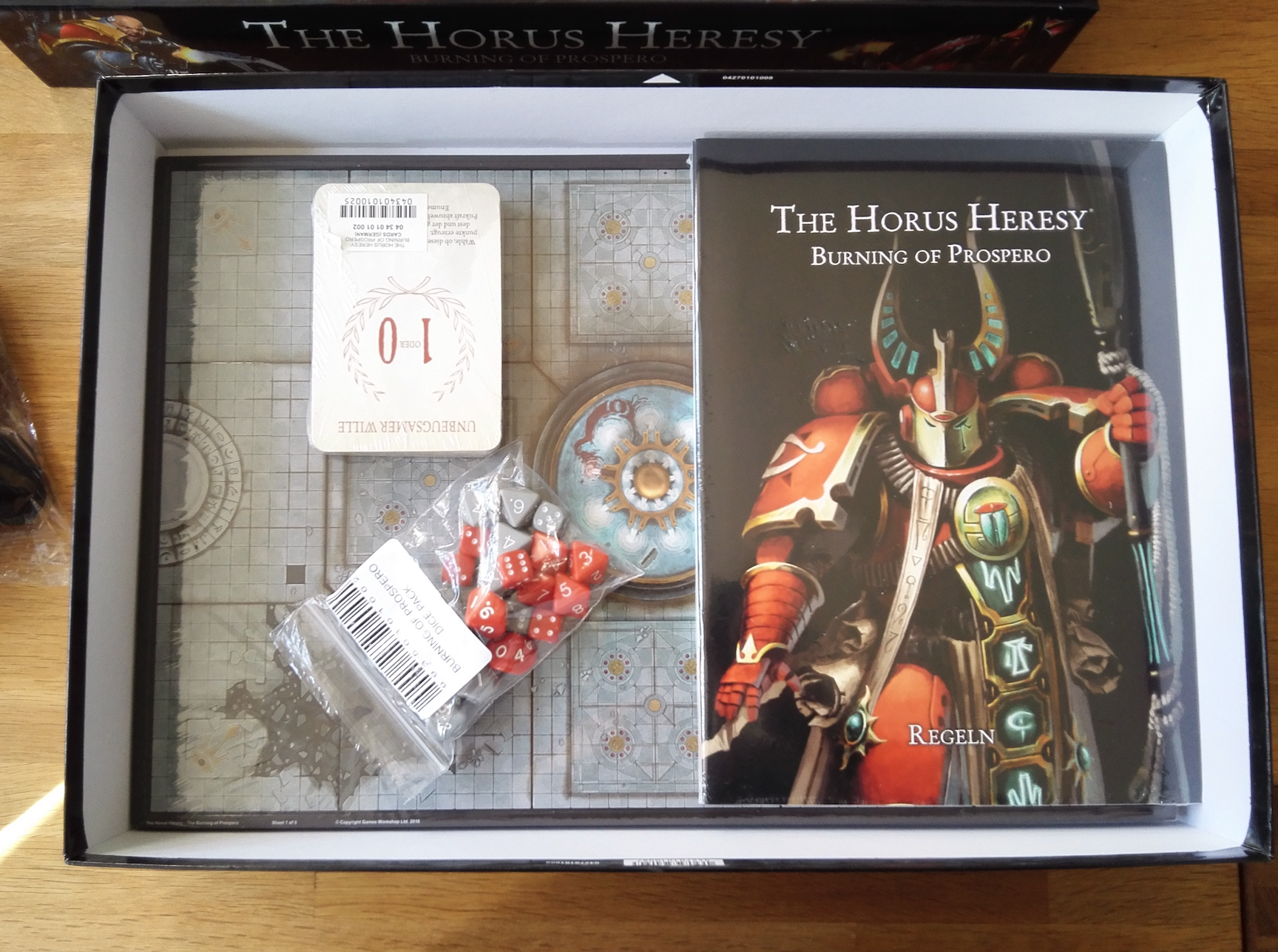 Auch Burning of Prospero besteht aus mehr als nur Miniaturen. Die enthaltenen Brettspielregeln orientieren sich dabei stark an denen der Calth-Box vom letzten Jahr, mit leichten Variationen. So besteht eine Runde aus vier Phasen: der Enumerationsphase (Psi-Phase), Bewegung, Angriff und Nachbereitung.
