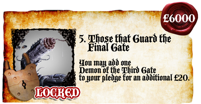 Wie es sich für einen Kickstarter gehört, gibt es natürlich auch einige Stretch Goals. Manche davon sind eher als Add-ons zu verstehen, liegen ihre Ziele doch unter dem Finanzierungsziel des Kickstarters. Sollte die Kampagne erfolgreich genug sein, kommen nicht nur einige Monster, sondern auch weitere Handlanger, Beschützer oder Kämpfer heraus, die u.A. dem langfristigen Ziel dienen, aus dem Duell-Spiel einen Skirmisher zu machen: