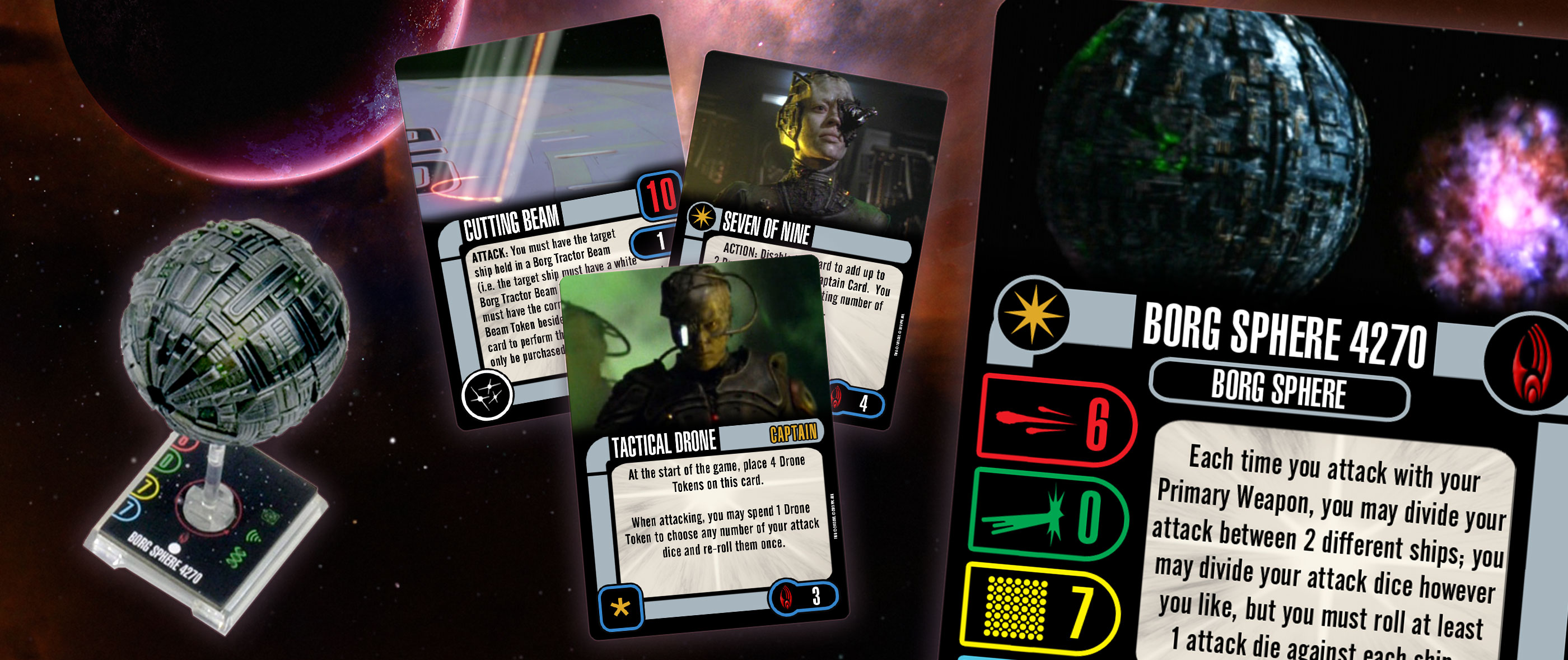 Even if you already own the Borg Sphere 4270, you are going to want to purchase the new repaint both for the dynamic new paint job as well as the tremendous power that multiple Borg ships can bring to your fleet. Make sure to contact your friendly local game store to reserve your copy now.