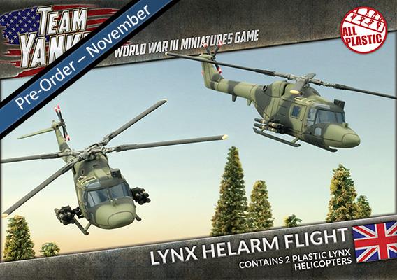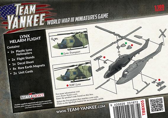 Contains five plastic Chieftain Main Battle Tanks, two plastic two Lynx helicopters, six resin tank commander figures, eight rare-earth magnets, two decal sheets, six unit cards and one printed cardboard Artillery & Salvo template.