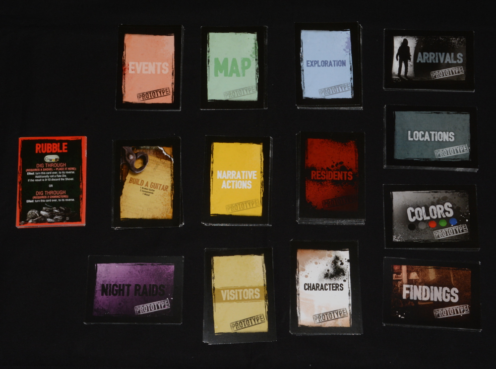 This War of Mine nutzt zahlreiche verschiedene Karten, darunter Profilkarten, Eventkarten, Locations, Einrichtungsgegenstände und Bereiche des Hauses, etc: