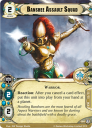 Jain Zar is a fearsome warrior, renowned throughout the Eldar craftsworlds for her speed, athleticism, and ruthless attacks. What’s more, the masks worn by Jain Zar and every Howling Banshee are designed to amplify their keening shrieks into brain-liquefying shockwaves. Even a glancing blow can cause paralysis, and Jain Zar is certainly adept at stopping her enemies’ tricks: once per round as an Interrupt, whenever you opponent targets a unit at Jain Zar’s planet with a triggered effect, you can cancel that effect for free!