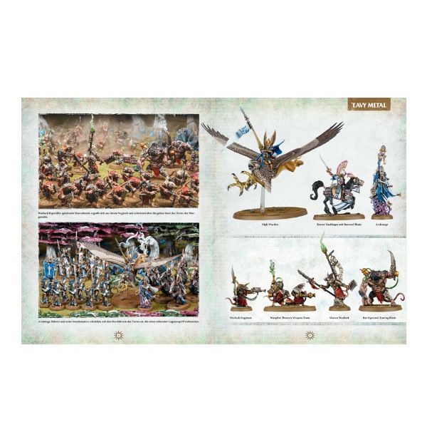 Spire of Dawn ist ein fantastisches Set randvoll mit Citadel-Miniaturen und einem Buch, das die Geschichte von Warlord Ripsnikks Versuch erzählt, den Swifthawk Agents mit seinen Skaven den Turm der Morgenröte zu entreißen. Das Set enthält 74 Miniaturen der Skaven und Aelf: