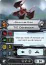 On the other hand, the TIE/D adds a new sheen to the ugprade slots the TIE/x7 abandons. By permitting your TIE defender pilots to fire twice each round—once with an equipped cannon of three or fewer squad points and once with a primary weapon—the TIE/D Title encourages you to explore what each of the low-cost cannons can add to your squad.