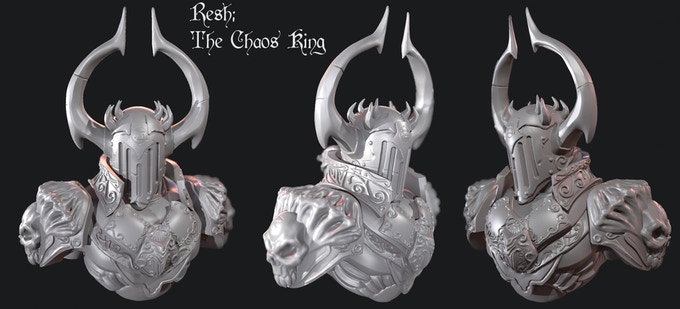 The stretch goals! At $4000 you will get access to a female Necromancer, one of Resh’s Most trusted advisors, and at $5000, an unamable horror, one of Resh’s monstrous army. While these haven’t been completed yet, you can expect the same level of design quality, and detail, you’ve seen in the original 3.