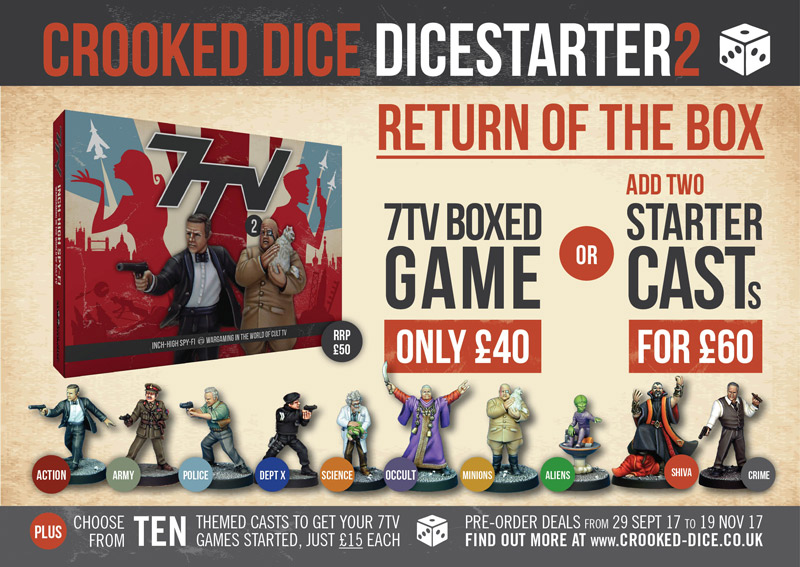 Bei Crooked Dice gibt es einige Neuheiten und Previews. Auch an die Pre-order Kampagne für die 7TV-Regelbox wollen wir nochmal erinnern.