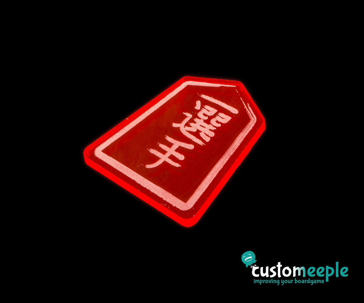 A big special token etched with oriental ideograms to mark which player has the initiative or its the first player.