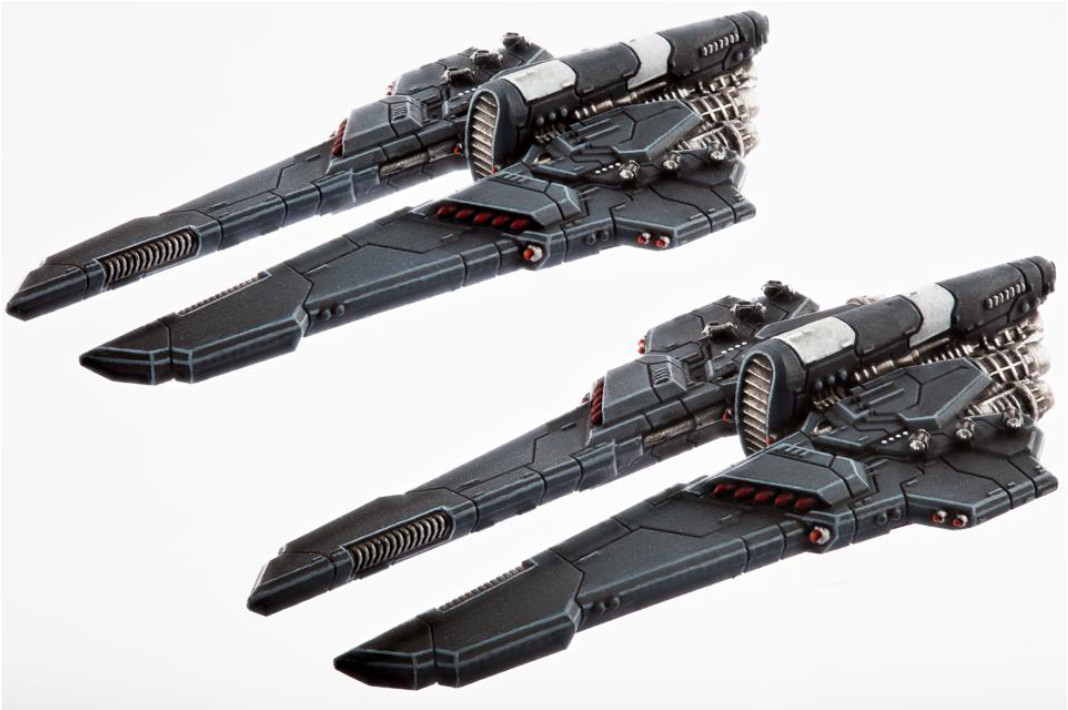 Typically, they hunt in packs, utilising their compact but lethal ion cannons to rake the hulls of the larger strike carriers which are their preferred prey. Although not as dangerous as a Corvette alone, their cooperation can quickly reduce the target to so much falling debris in a matter of seconds.