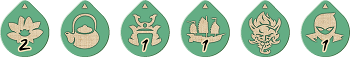 When the resolution phase commences, players reveal their combat tokens, returning bluff tokens to their daimyō, and resolve their conflicts. First, the clans send out their raiding parties to destroy any province they wish to prevent their enemies from gaining. Next, the daimyō attempt to settle claims through the use of diplomacy. Finally, if no other course of action remains, the clans will engage in battle. Each time a province is successfully defended, the defender places one of their clan tokens in that province to further defend it from future attacks. However, if the daimyō’s defenses fail, they cease to rule the province and control passes to the attacking clan.