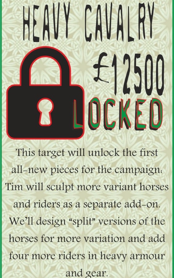 Heavy Cavalry£12500 – At this target Tim will sculpt more variant undead horses and riders as a separate add-on. We’ll add „split“ versions of the horses for wider variation and produce 3-4 new heavily armoured zombie riders.
