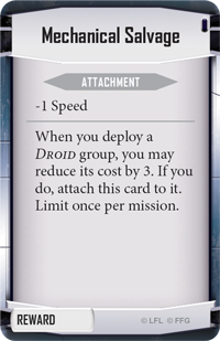 he receives Mechanical Salvage —allowing him to bring droids into play for a significantly reduced cost.
