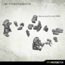 This multi part set contains one Orc Sturmtankette resin model armed with rocket launcher or twin HMG or heavy flamer.