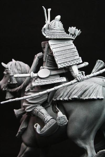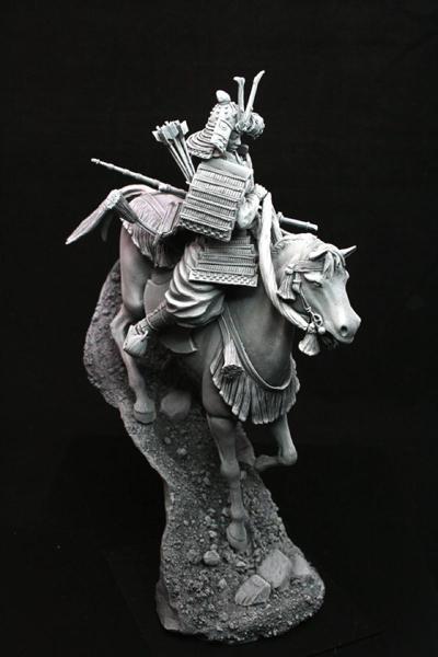Ein Modell das wohl besonders anspruchsvolle Maler und Sammler interessieren dürfte, der berittene Samurai von Mitches Military Models in 120mm.