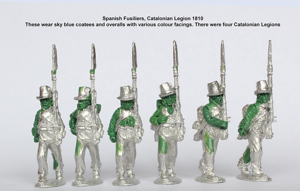 Alan has started work on the first bunch of Spanish greens. The uniforms will span 1808-15 throughout the range. There were many variants of uniforms in the army from Spanish made to British made/ imported uniforms including mixes of both. Although it would be madness to try to cover all of them and he hopes to capture a fair few of them over time. There’s no release date yet. These, shown here, will all be metal figures.