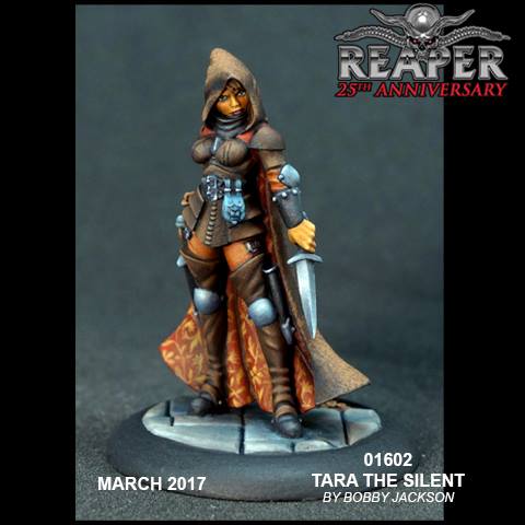 We’re pleased to announce the next miniature in our 25th Anniversary Celebration! Starting March 1, 2017, you can get a free „Tara the Silent“ unpainted metal miniature with your qualifying purchase. For all the details, please visit www.reapermini.com!