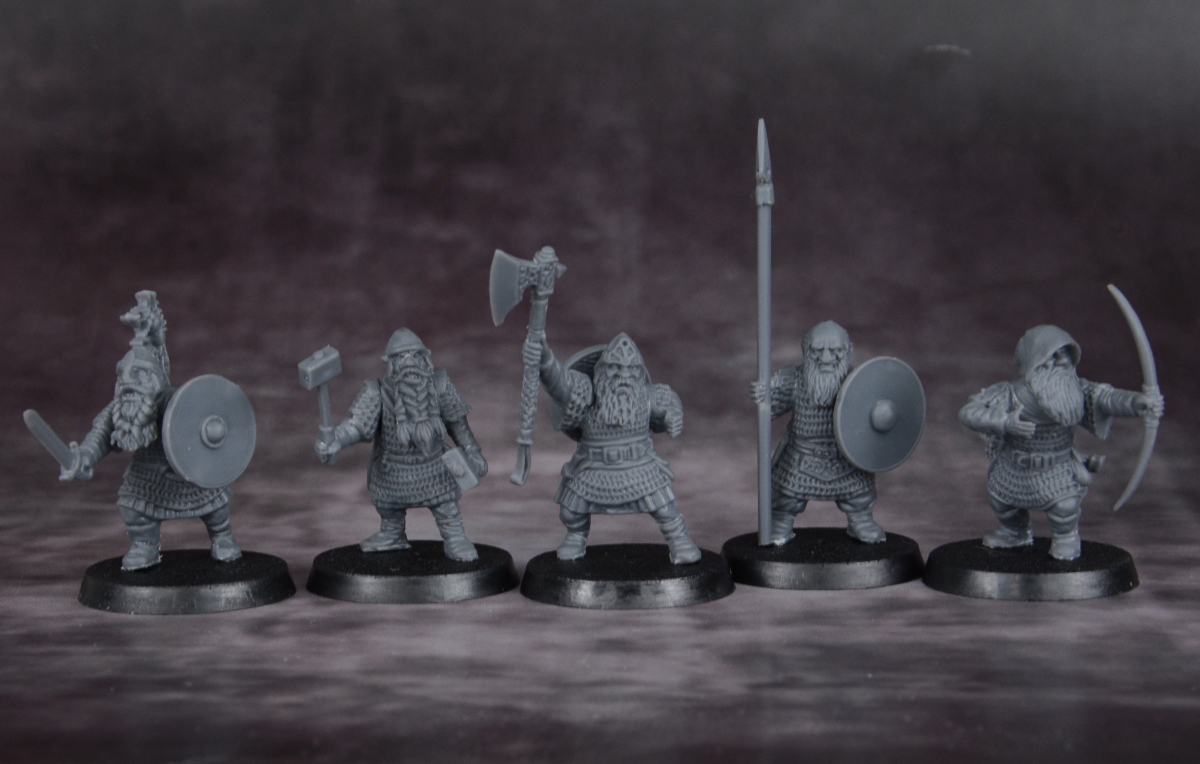 Der Zusammenbau der Modelle ist absolut simpel. Um eine möglichst vielseitige Truppe zu bauen, haben wir uns fünf möglichst unterschiedliche Zwerge zusammengestellt: