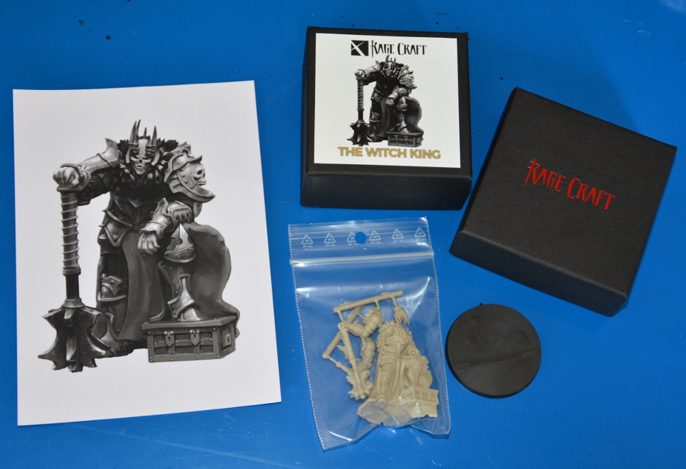 Die schicken Rage Craft Boxen kennen wir schon aus unserem ersten Review, und auch der Witch King kommt in der schmucken, gepolsterten Box, wobei die einzelnen Teile zusätzlich noch in einem Tütchen verpackt sind: